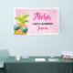 Aloha Pineapple birthday banner Tropical Luau Pink
