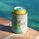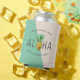 Aloha Pineapple, Linen Texture 50th Birthday Bash Can Cooler