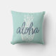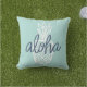 Teal, Navy Blue and White pillow with pineapple and hand-lettered "aloha".