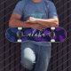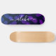 “Aloha”. Bring a bit of the Hawaiian islands to your city streets whenever you use this brightly colored, chic, striking, stylish, modern skateboard sporting crisp, white handwritten script typography over a distressed graphic, purple blue ombre pineapple pattern over a black background. Makes a fun and stylish statement every time you surf the pavement. Makes a great gift for a friend, or for yourself if you can’t bear to gift it away! You can easily personalize this skateboard. Please message me with any questions or requests.