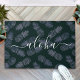 “Aloha”. Bring a bit of Hawaiian island hospitality into your home with this chic, modern doormat with white handwritten script typography over a graphic, pineapple pattern in two shades of dark blue. Makes a great gift for a special friend, or even yourself!