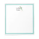 Pretty tropical colors of aqua, coral, and island green combine in a fantasy floral seahorse for a notepad bordered in aqua. Personalized with your name. Cute and colorful.