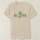 Vintage pineapple illustration as part of text Aloha. Green and yellow tones.