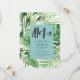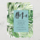 Modern tropical palm leaf watercolor foliage party invitations. Hand painted effect script text. Part of a on trend summer collection. Teal color.