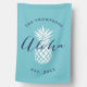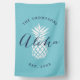 A great gift for newlyweds or new homeowners, our personalized welcome house flag features the Hawaiian greeting "aloha" in navy blue calligraphy script lettering with a white tropical pineapple illustration on a sunny turquoise aqua background. Personalize with your family name and year established in classic lettering.