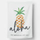 A great gift for newlyweds or new homeowners, our personalized welcome house flag features the Hawaiian greeting "aloha" in handwritten script lettering with a watercolor tropical pineapple illustration on a white background. Personalize with your family name and year established along the bottom.