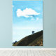 A landscape painting of a large white cloud floating over a hillside that has a single tree growing on it.