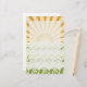 Stationery with design of different shades of green waves with the sun rising on the horizon.