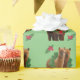 Alpaca Christmas wrapping paper with a wreath around our alpacas. The wrapping paper is fully customizable so you may change the size of the alpacas or change the background color. It's a great way to wrap Christmas gifts!