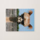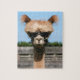 Humorous alpaca puzzle. Image of an alpaca named Classified, who has always been the class clown!