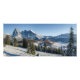 Photo print of the landscape of the Alpe di Siusi (Seiser Alm) with Sassolungo Dolomites mountain under a layer of snow in winter in South Tyrol, Italy.