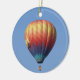 This hot air balloon is named Alpenglow. It's yellow, orange, red, purple and blue zig-zags are displayed on a sky blue background on this ornament. Hang this beautiful balloon on your Christmas tree this year.