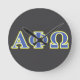 Alpha Phi Omega Yellow and Blue Letters Round Clock