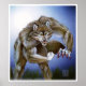 An Alpha male werewolf snarls showing off those sharp teeth and claws after his transformation is complete as the full moon gleams brightly in the background.