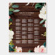 This wedding seating chart features a wreath of watercolor flowers in blush pink and white with green foliage on a rustic faux wood print background. For more advanced customization of this design, please click the Customize Further link to change font, size, and color. Matching items are also available.