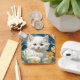 Keychain featuring a kitten in the Art Nouveau style of Alphonse Mucha! A white and fluffy kitten with blue eyes poses with yellow flowers. A cute gift for cat lovers and Art Nouveau collectors!