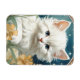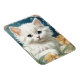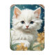 Magnet featuring a kitten in the Art Nouveau style of Alphonse Mucha! A white and fluffy kitten with blue eyes poses with yellow flowers. A cute gift for cat lovers and Art Nouveau collectors!
