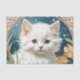 Tissue Paper featuring a kitten in the Art Nouveau style of Alphonse Mucha! A white and fluffy kitten with blue eyes poses with yellow flowers. A cute gift for cat lovers and Art Nouveau collectors!