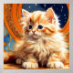 Poster featuring an orange kitten in the Art Nouveau style of Alphonse Mucha. This cute kitty with blue eyes adorably looks at you against a backdrop of a night sky full of stars. A wonderful gift for cat lovers and Art Nouveau collectors!