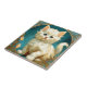 Ceramic Tile featuring a white cat in the Art Nouveau style of Alphonse Mucha! A fluffy white cat stares wide eyed at the viewer against a blue backdrop. A great gift for cat lovers and Art Nouveau collectors!