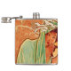Flask featuring Alphonse Mucha’s lithograph Winter (1896). This art piece is part of Mucha’s first The Seasons series. Winter is represented as a woman wrapped in a green cape. She stands with bushes covered in snow. A unique gift for fans of Art Nouveau and Czech art!