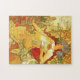 Alphonse Mucha Autumn puzzle. Oil on canvas from 1896. Czech artist Alphonse Mucha frequently did allegorical work depicting seasons. This particular version of Autumn is from a series painted in 1896 and feautures a beautiful young woman with dark red hair adorned with white chrysanthemums. She wears a thin blue dress and stand in a vineyard. In her left hand she holds a porcelain dish, and in her right she squeezes a fresh bunch of purple grapes still on the vine. A beautiful gift for fans of Alphonse Mucha, Art Nouveau, and allegorical paintings.