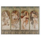 From the icy, contemplative hush of Winter to the sun-drenched, languid warmth of Summer, this panel brings a sense of sophisticated history to any room. This specific layout preserves the decorative "Thistle" borders of the original lithographs, making it a perfect horizontal statement piece for over a mantel or a bed. If you love the intersection of classical realism and decorative organic design, this iconic Mucha series is a soulful addition to your collection.