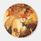 Alphonse Mucha Fruit magnet. Lithograph poster from 1897. Czech artist Alphonse Mucha painted a variety of different allegories throughout his career. Fruit depicts a beautiful woman holding an armful of purple grapes, green pears, figs and red apples. The woman’s dark hair is adorned with flowers and leaves, and she wears a light blue art nouveau dress with silver clasps and gold armband. A beautiful gift for fans of Mucha, art nouveau posters, and vintage prints.
