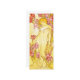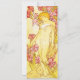 Alphonse Mucha Iris invitations. Oil painting on canvas. Czech painter Alphonse Mucha painted an allegorical series depicting various flowers as beautiful women. Iris features an attractive brunette wearing a thin dress. The woman is surrounded by giant purple irises that climb the yellow and blue background. A great gift for fans of Mucha, art nouveau, and allegorical flower paintings.