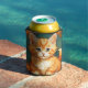 Can Cooler featuring an orange cat in the style of Alphonse Mucha! This adorable kitty with green eyes is framed by autumn leaves. A wonderful gift for cat lovers and Art Nouveau collectors!