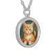 Alphonse Mucha Style Orange Cat Silver Plated Necklace
