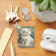 Keychain featuring a white cat in the style of Alphonse Mucha! This blue eyed fluffy kitten poses with pink flowers and blue blankets. A fabulous gift for cat lovers and Art Nouveau collectors!