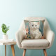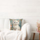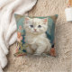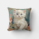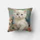 Pillow featuring a white cat in the style of Alphonse Mucha! This blue eyed fluffy kitten poses with pink flowers and blue blankets. A fabulous gift for cat lovers and Art Nouveau collectors!