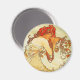Alphonse Mucha Summer magnet. Oil painting on canvas from 1896. Throughout his career, Czech artist Alphonse Mucha frequently painted allegorical depictions of the seasons. This 1896 version of Summer is from a complete four seasons set and features a beautiful young woman with light brown hair leaning on a vine by the river side as she dips her feet in the water. She wears a thin white gown and large red flowers in her hair. A beautiful gift for fans of Alphonse Mucha, art nouveau, and vintage prints.