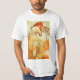 Alphonse Mucha Summer t-shirt. Oil painting on canvas from 1896. Throughout his career, Czech artist Alphonse Mucha frequently painted allegorical depictions of the seasons. This 1896 version of Summer is from a complete four seasons set and features a beautiful young woman with light brown hair leaning on a vine by the river side as she dips her feet in the water. She wears a thin white gown and large red flowers in her hair. A beautiful gift for fans of Alphonse Mucha, art nouveau, and vintage prints.