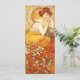 Alphonse Mucha Topaz invitations. Oil painting on canvas. Czech artist Alphonse Mucha frequently painted allegories, and Topaz is from a series depicting gemstones as beautiful women. The painting features a young beautiful young woman wearing a deep topaz dress standing in from of an ornate jeweled background. A great gift for fans of Mucha, Art Nouveau, and vintage prints.