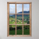 Poster that looks like a window -- green hillside Imagine you lived on the side of a hill in the Alps of Europe... If you did, this is the view you would see every day from your window. A photographic poster creates the perfect fake window effect on your wall, so that you will feel like you have your own mountain chalet or cabin on a beautiful green hillside in the mountains of Europe.