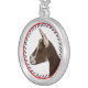Alpine Goat Artwork Painting surrounded by a border of red hearts and black hoof prints on this fine Silver Necklace - for the ultimate goat lover.
