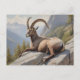 Alpine Ibex laying on rocky cliff Postcard