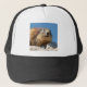 Alpine marmot on rock trucker hat