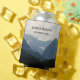 Wedding can coolers with a photograph of beautiful mountains, cloudy sky, and rolling hills filled with trees in the foreground. Gray blue color scheme.