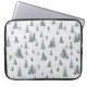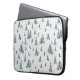 This laptop sleeve has downhill skiers navigating through tree-lined slopes, with elusive yetis playfully hiding and darting across the scene.