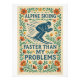 Hit the slopes and your sense of humor with this playful folk art-style design featuring a fearless skier zooming past life's worries. Framed with vibrant floral motifs inspired by traditional Scandinavian and Eastern European patterns, this cheeky alpine skiing illustration combines rustic charm with modern mental-health humor. Perfect for winter sports lovers, therapy enthusiasts, and anyone who believes laughter is the best downhill run. Great for stickers, mugs, t-shirts, and more!