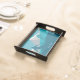 This is a well made, sturdy wooden tray with a flawless black finish and lovely map on the tray surface. It is both vintage & modern at the same time. Looks exactly like the photo; does not disappoint. So nice to find something of quality individually made and not the mass-produced 'shabby chic' merchandise seen in stores. I am so pleased to be able to give this to my college-age niece for her birthday. This can be used as a tray to hold jewelry or toiletries, or hung on the wall as art. The map surface is sealed (it is slightly shiny) so would be moisture resistant. It is well worth the asking price but I was able to apply a sale code as well. Very happy with my purchase. Map is crisp & clear and sealed with a water-resitant finish.