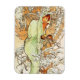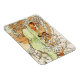 Alphonse Mucha Winter magnet. Oil painting on canvas from 1896. Czech painter Alphonse Mucha depicted allegorical representations of the four seasons multiple times throughout his career. This version of Winter is from a series completed in 1896 and features a pretty young woman draped in an arctic blue robe with a hood covering her light brown hair. She sands beneath a snow covered trees sheltering a little bird in her hands. Three other tiny birds sit in the branches as a winter storm rises. A beautiful gift for fans of Mucha, art nouveau, and vintage art.