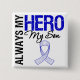 ALS Awareness Always My Hero My Son T-Shirts, Clothing and Gifts in grunge text and vivid blue and white pinstriped ribbon to highlight a hero in your life battling or who battled ALS. Visit our shop for more unique ALS awareness gifts, t-shirts and more.