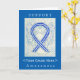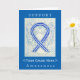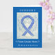 The guardian angel greeting or note card features the picture of a blue and white striped awareness ribbon angel painting. The card states "Support <Your Cause Here> Awareness". Add your own optional words or message to the greeting card for personalized angel art cause awareness notecards! You can also remove the text for an art only angel note cards. The blue and white striped awareness angel ribbon painting art greeting cards can be customized with personalized messages to make great awareness cause art cards for fundraisers, awareness gifts, or other special events. Give this angel art card as an awareness ribbon gift for any occasion.