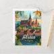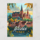 A picturesque and nostalgic depiction of Alsace, France, renowned for its charming villages, lush vineyards, and scenic landscapes. The design captures the region's distinctive half-timbered houses, rolling vineyards, and quaint streets of towns like Strasbourg and Colmar. Rendered in a vintage style, the artwork evokes the timeless beauty and cultural richness of Alsace, inviting viewers to explore its picturesque countryside and rich heritage
