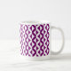 A mug with an alternating decorative hard edged geometric shapes creating an interesting alternating zigzag line pattern.