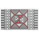 This concentric square features simple geometric patterns in shades of gray and red with the colors in the layers alternating when switching from the vertical to the horizontal.
